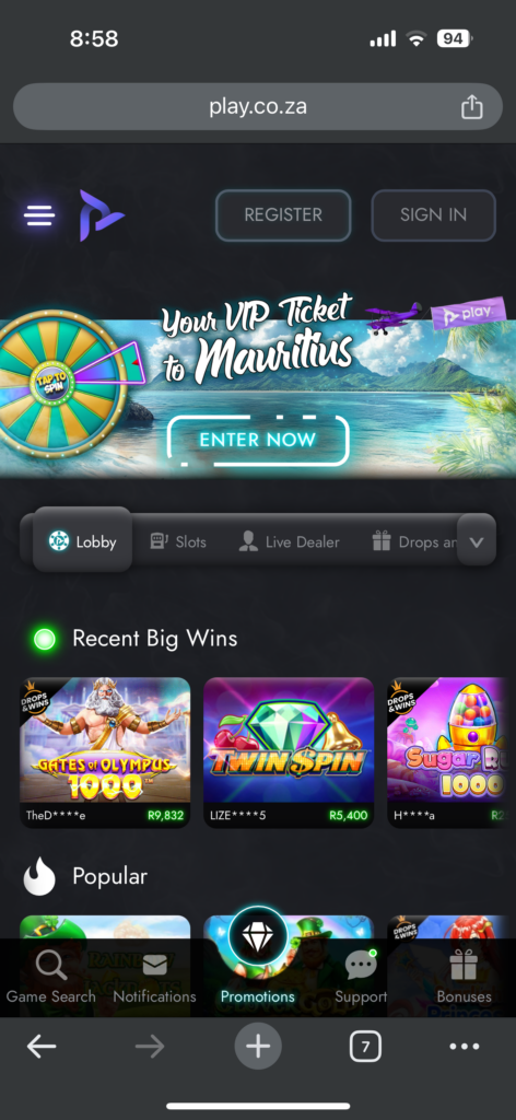 Navigation on Play.co.za is incredibly intuitive, with a clean and organized layout that makes finding games, bonuses, and account settings a breeze. The menu is well-structured, with clear categories, ensuring you can easily jump between sections without unnecessary clicks. The mobile site also offers all the key features you’d expect from the desktop version, including live chat support, quick deposits and withdrawals, and personalized account management. One standout feature is the ability to play on-the-go, with no app required, meaning you can access your favorite games and promotions right from your mobile browser.